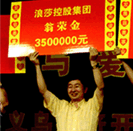 浪莎控股集團董事長翁榮金在“與愛同行?義烏經濟開發區慈善公益晚會”捐款350萬。