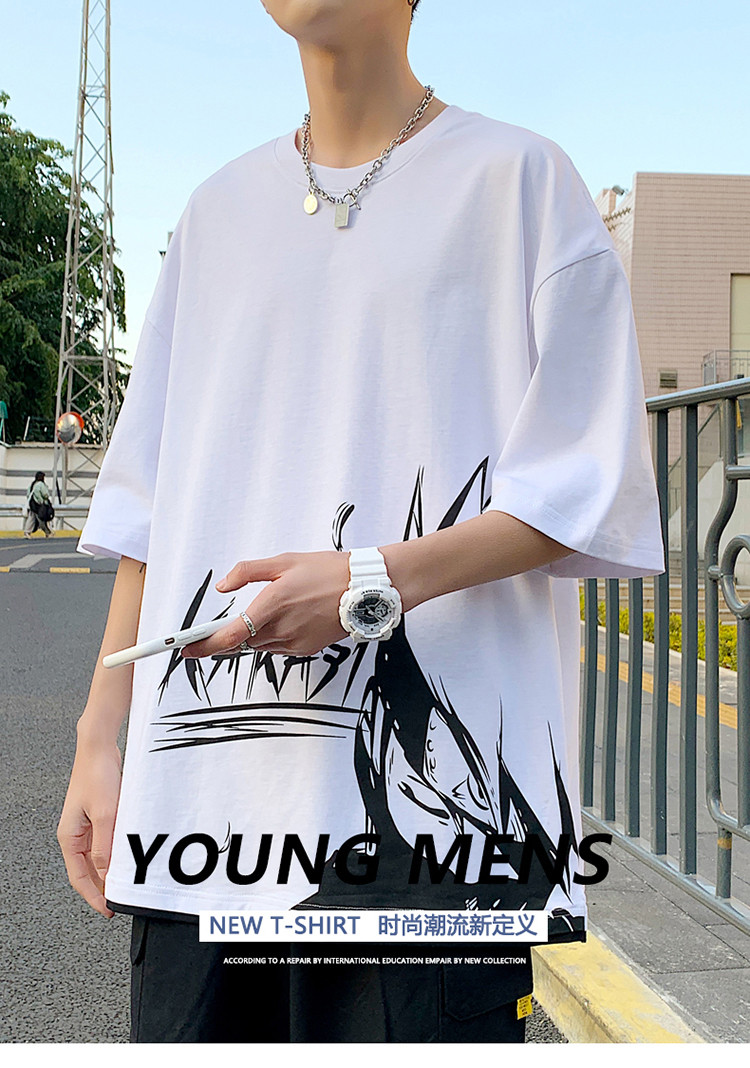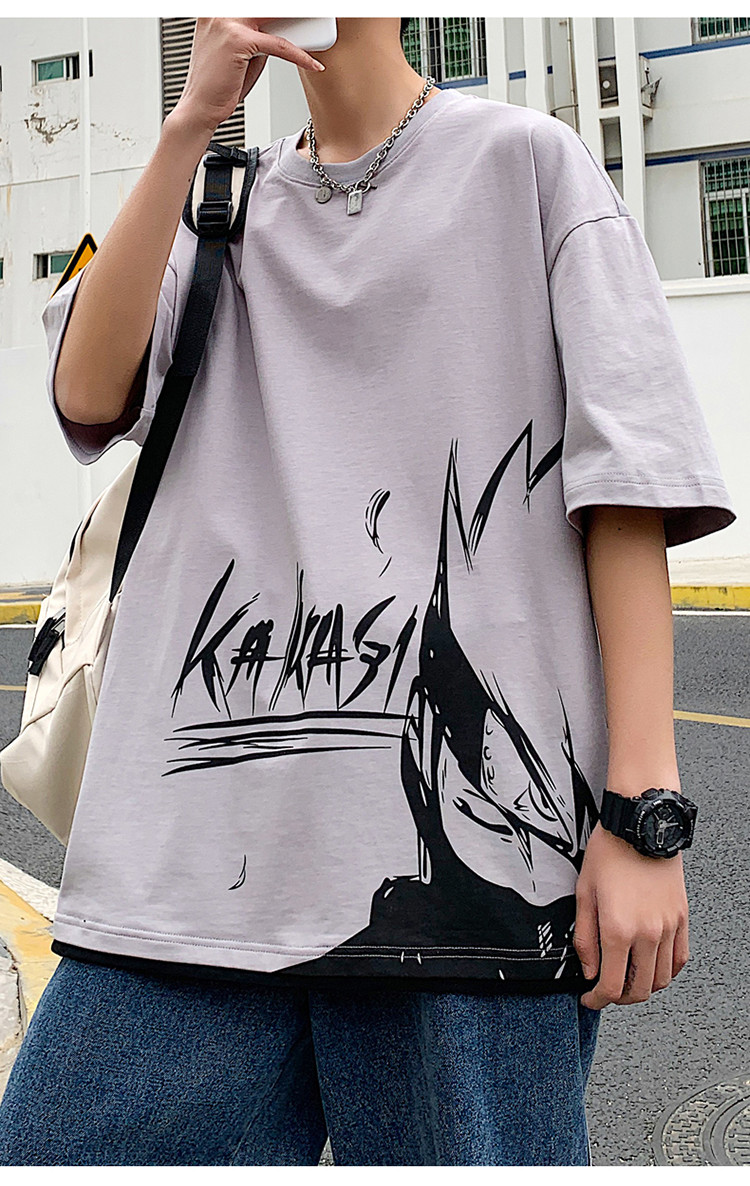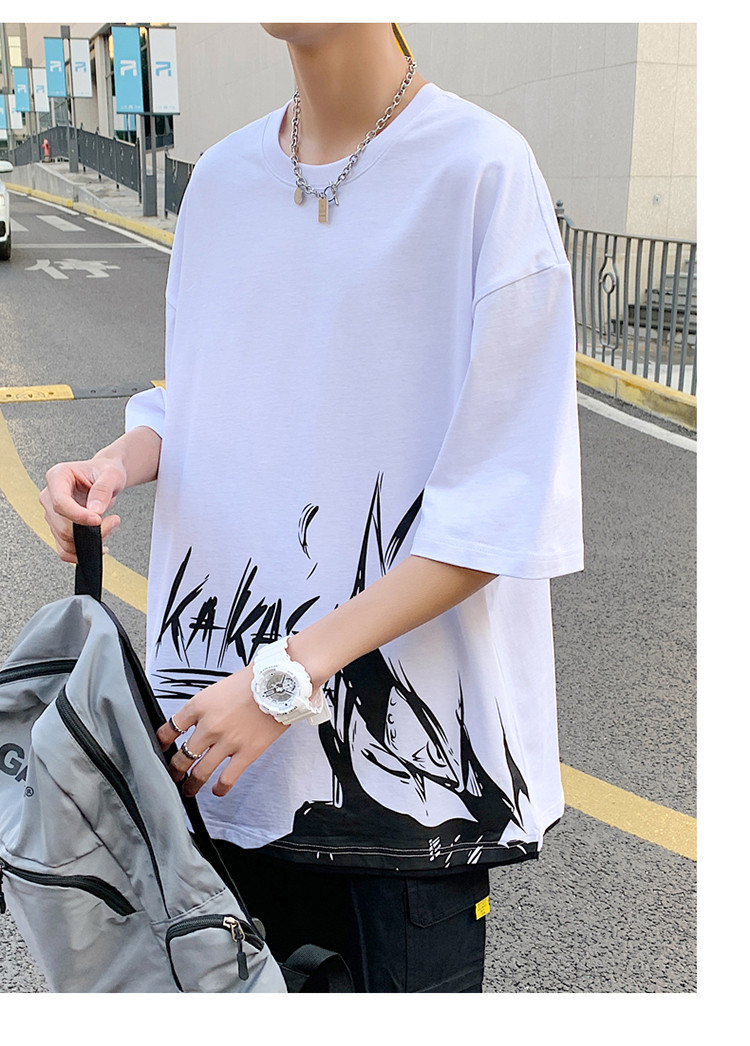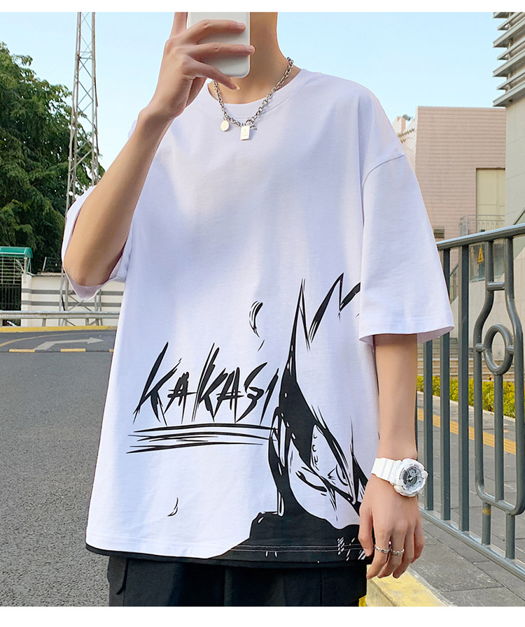 純棉舒適】夏季新款男士圓領短袖時尚火影印花半袖T恤