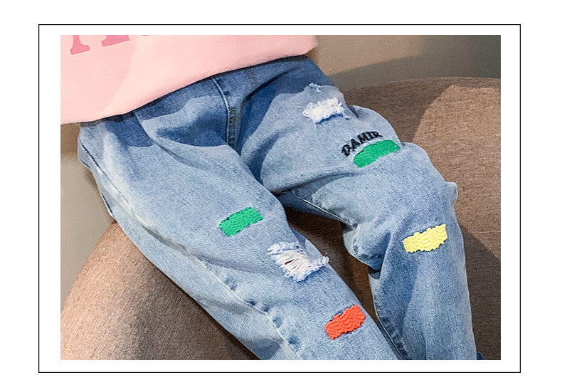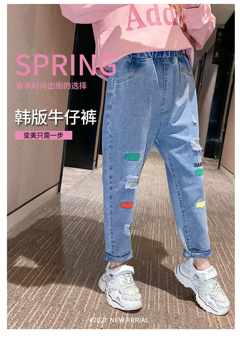 浪莎女童褲子春秋中大童洋氣寬松牛仔褲韓版女兒童裝春秋款休閑褲