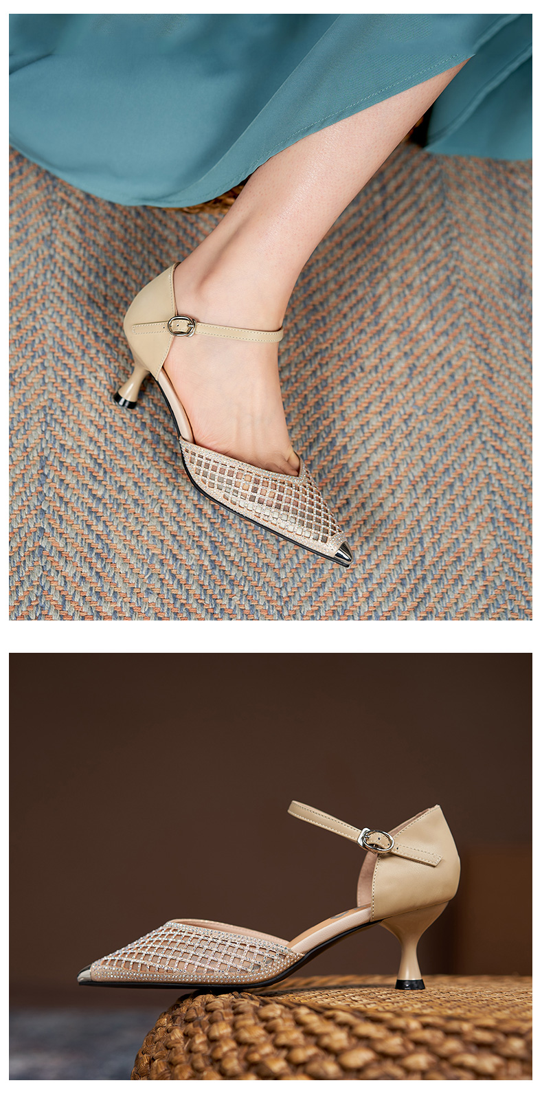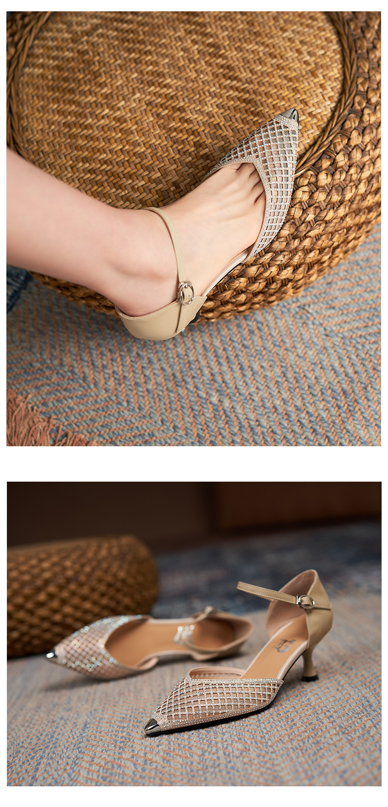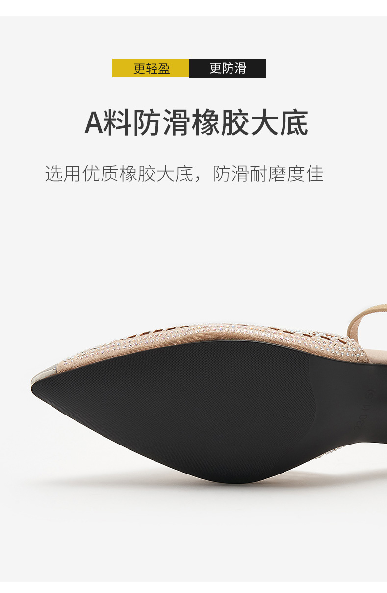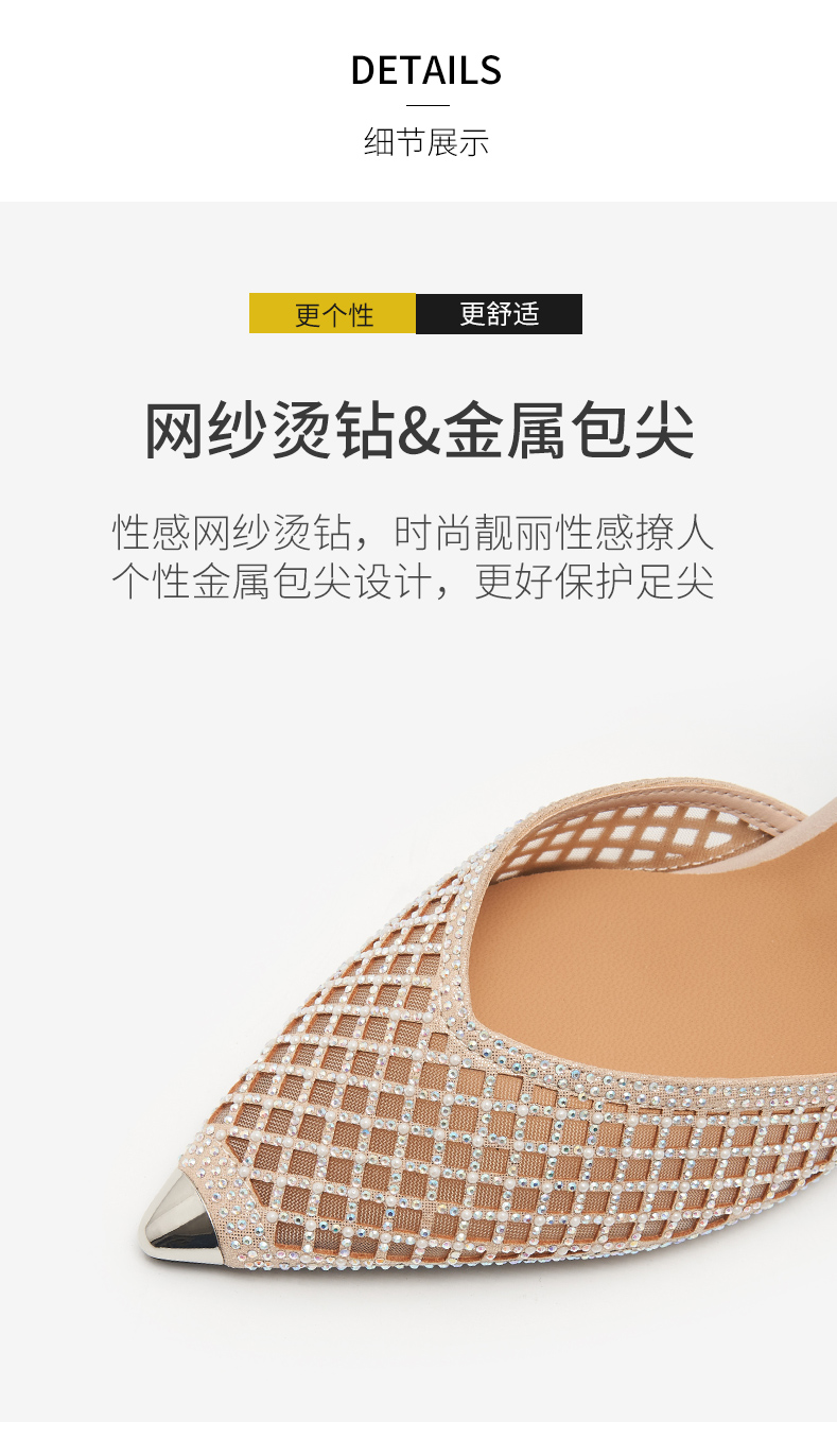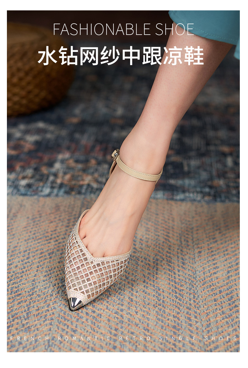 細跟包頭涼鞋女2021年新款夏中跟單鞋帶鉆鏤空網紗一字帶羅馬涼鞋