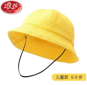 浪莎兒童遮陽帽夏防曬帽帶防風(fēng)繩漁夫帽可折疊寶寶沙灘帽LSSQ-A045-2638 黃色 頭圍54cm[6歲-9歲】