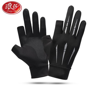 浪莎防曬手套男開車防滑速干透氣夏季薄款露指騎行手套男戶外釣魚手套LSSQ-A045-5055 黑灰色