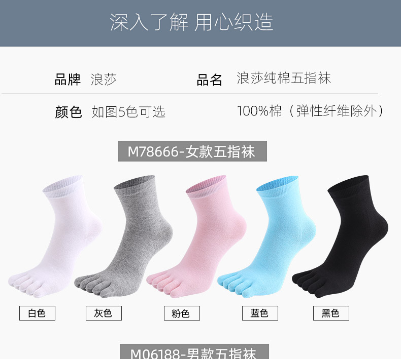 浪莎五指襪男士純棉中筒襪春秋薄款全棉腳趾防臭吸汗分趾襪子女夏