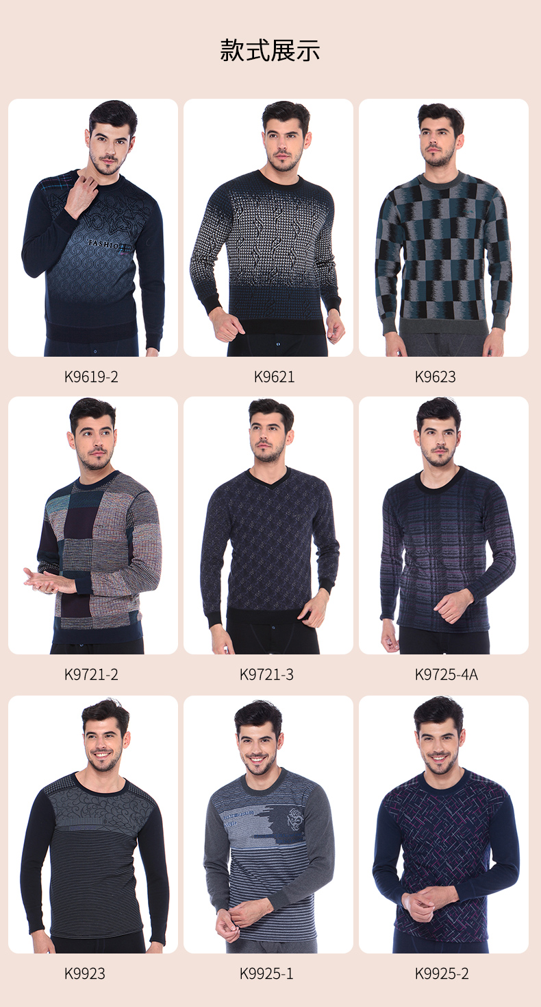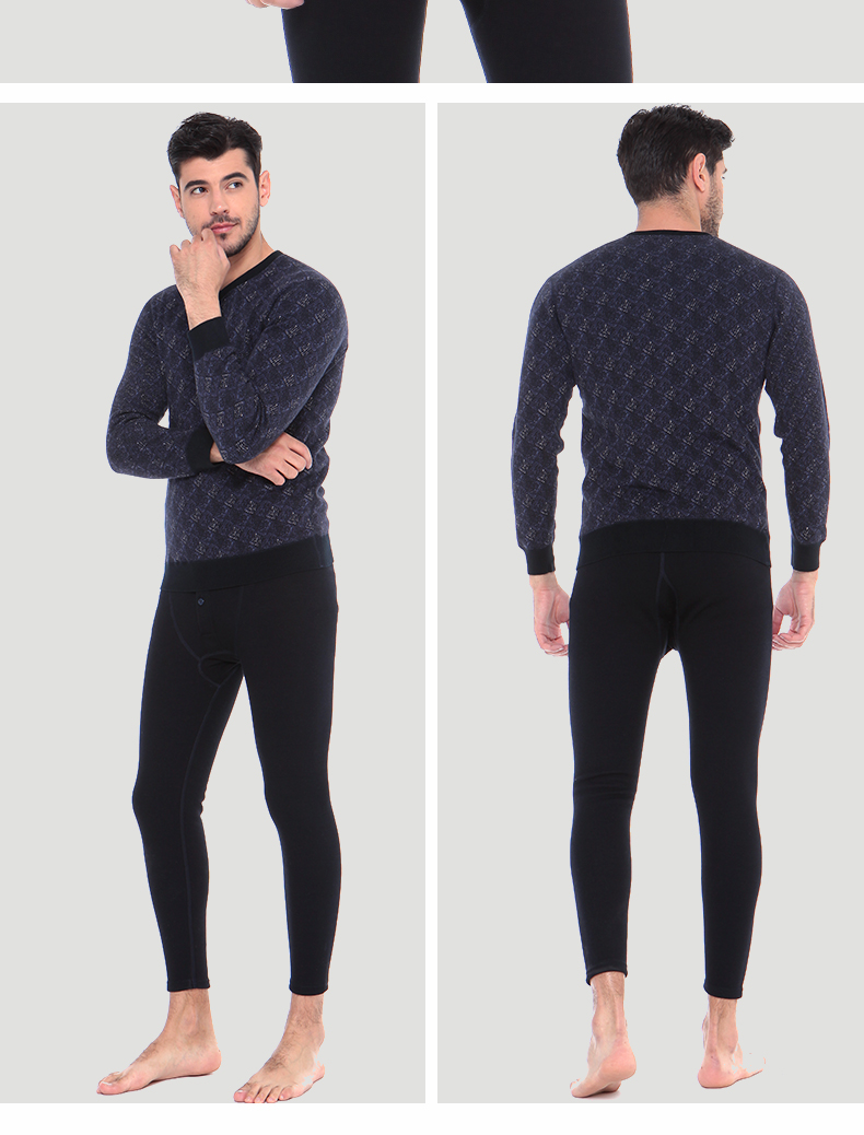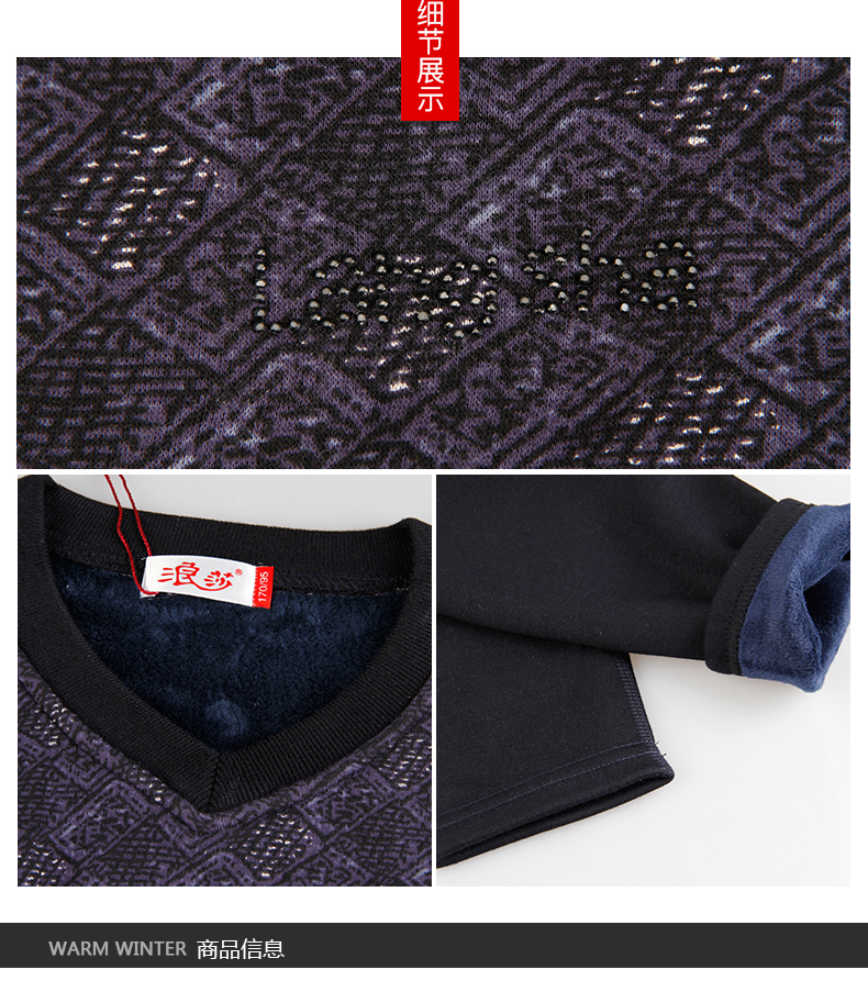 浪莎時尚加絨加厚保暖內衣套裝男士中年格子秋衣秋褲冬季打底防寒
